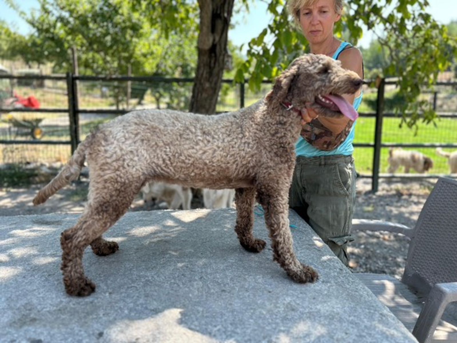 Questa giovane femmina incarna perfettamente lo standard morfologico del Lagotto Romagnolo, unito a un carattere straordinariamente equilibrato.