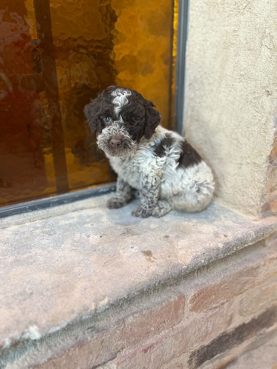Barocco è un cucciolo equilibrato e vivace, sempre pronto a comunicare e a partecipare alla vita del branco umano con simpatia e coinvolgimento — un piccolo grande ambasciatore del vero temperamento Lagotto Romagnolo.