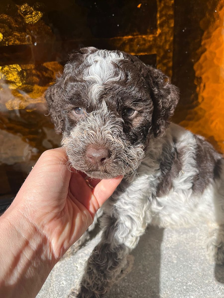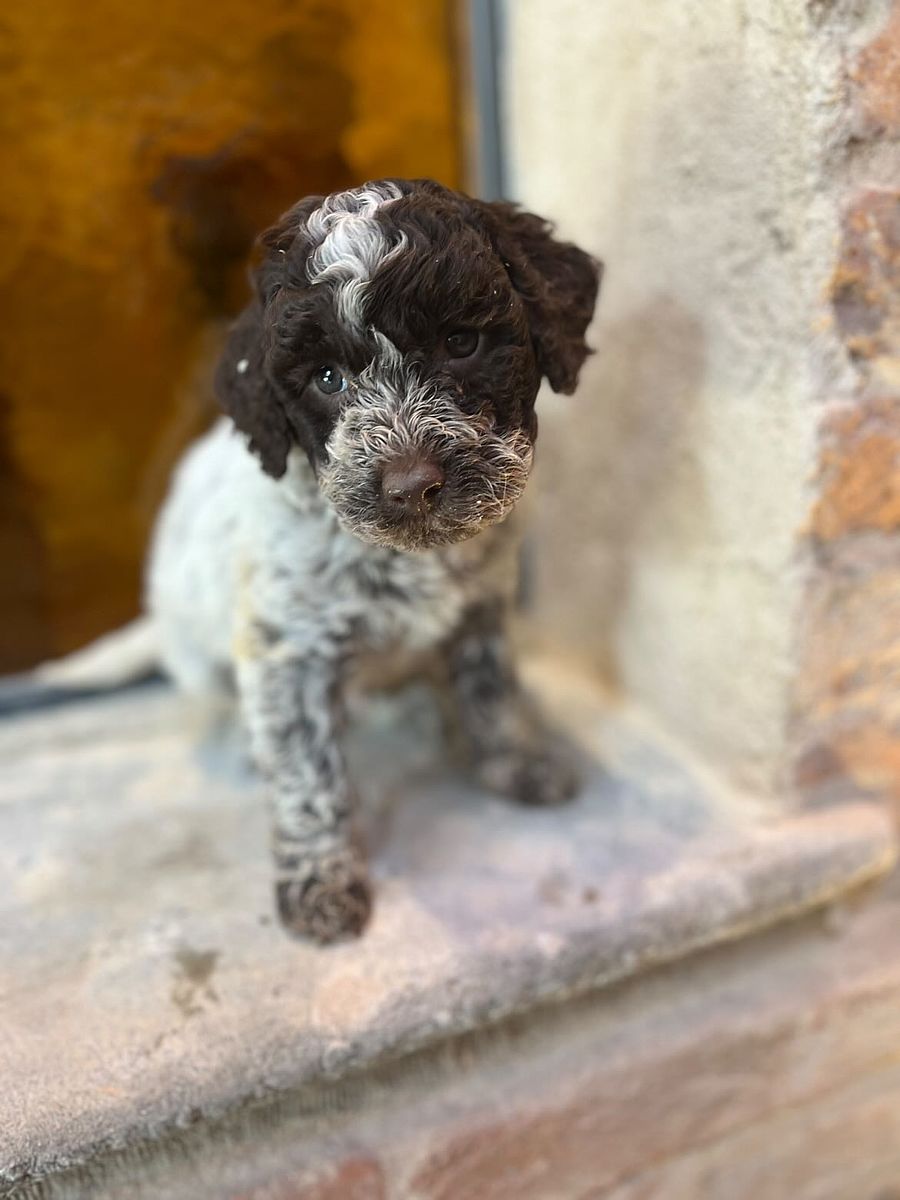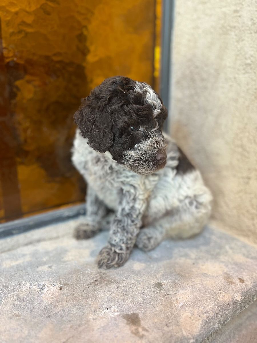 Barocco è un cucciolo di Lagotto Romagnolo che porta perfettamente il nome che gli è stato scelto: come l’arte da cui trae ispirazione, è ricco di sfumature, energia e personalità. Fin dai primi mesi ha mostrato un carattere sicuro e intraprendente, affrontando con curiosità e fiducia ogni nuova esperienza.