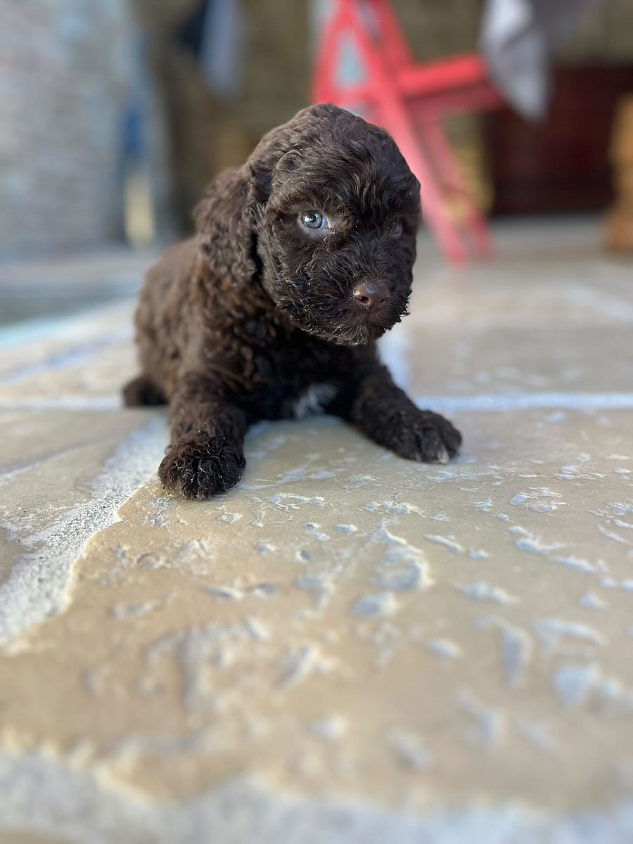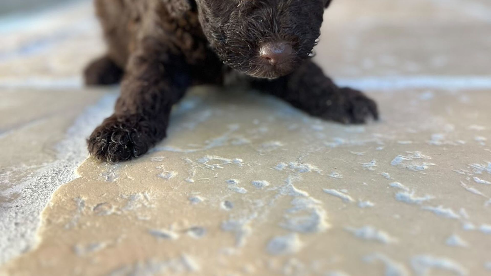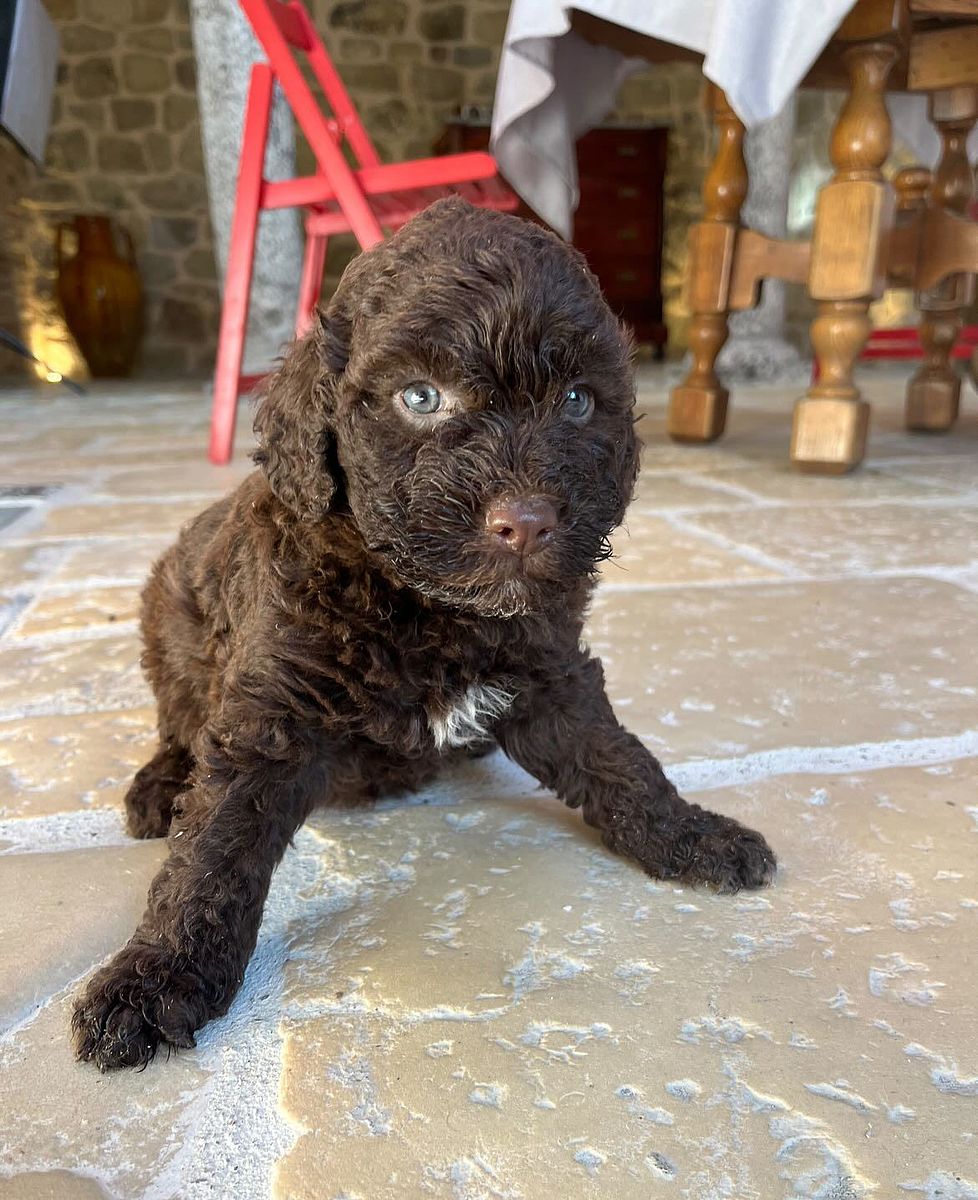 Gotico è un cucciolo di Lagotto Romagnolo dal mantello marrone caldo e uniforme. Il suo nome evoca atmosfere antiche e un fascino riservato, perfettamente in linea con il suo temperamento delicato e riflessivo.