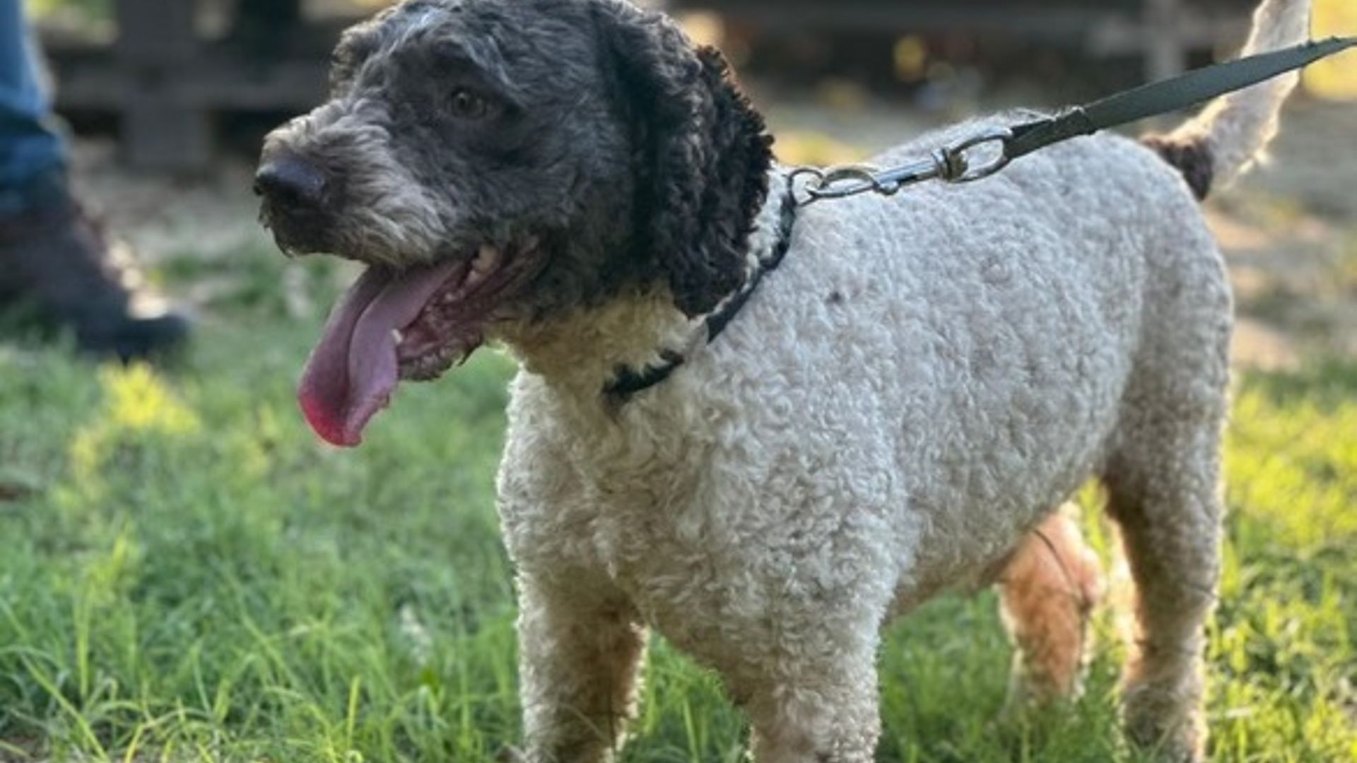 Si tratta di un lagotto di 2 anni e mezzo, che ha seguito un percorso professionale di addestramento alla cerca.